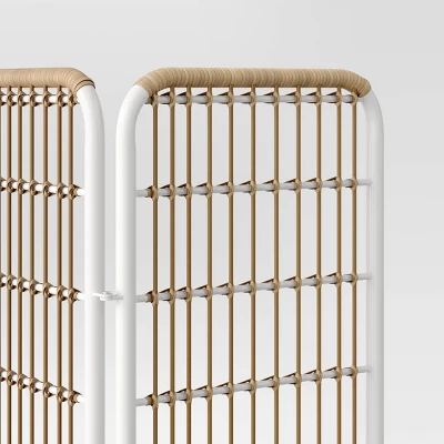 Add a beautiful, sculptural element to tie your patio or deck decor together with the help of this Southport 6′ Three-Panel Decorative Patio Screen from Opalhouse™. Featuring a hinged design so you can choose your preferred angle and arrangement, this 6-foot-tall patio screen provides a perfect way to divide multiple spaces in your outdoor entertaining area, or it can simply be a pretty backdrop to potted plants and other decorative items. Rust-resistant and weather-resistant qualities help keep the steel frame and wicker woven panels looking great through outdoor use.
